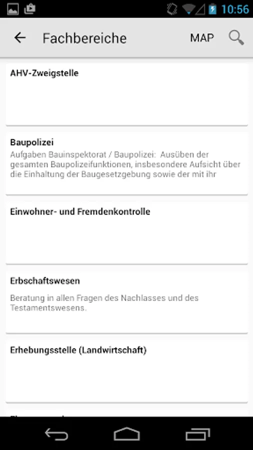 Agenda, online counter, administration, waste collection, vacancies, housing offers, integrated map function, automatic route and distance display. Integrated call and email function, QR scanner, automatically updated content. Can also be run offline. When online, push notifications and mobile eGovCenter with online counter, GA reservation system and central user account
