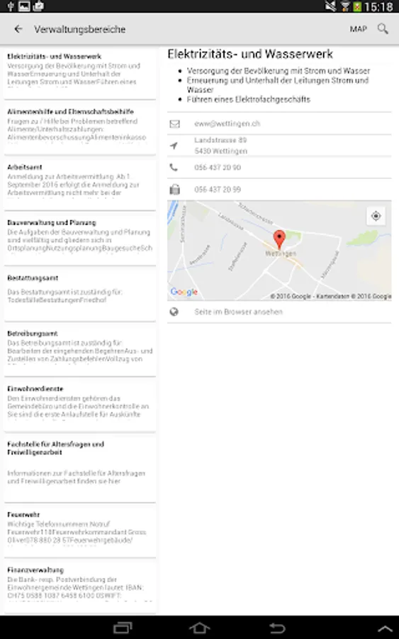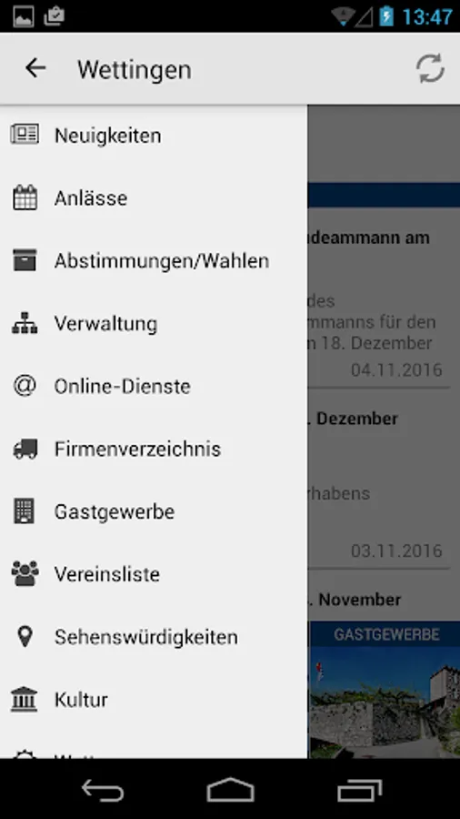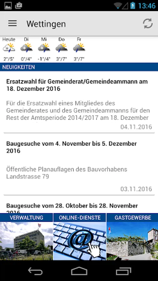 Free. A must for residents / -inside the municipality Wettingen and other interested parties. For smartphones and tablets in portrait and landscape modes.