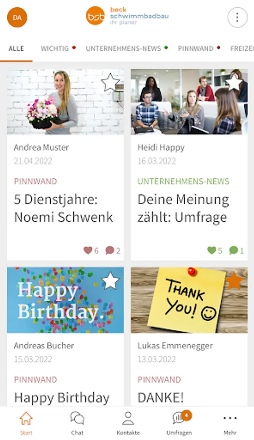 Find out the latest information about your company at any time, regardless of location, find your work colleagues easily and simply in the contact directory and chat 1:1 or in group chats. All with reliable Swiss software on secure Swiss servers.