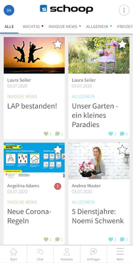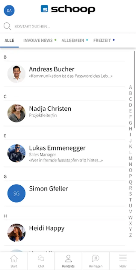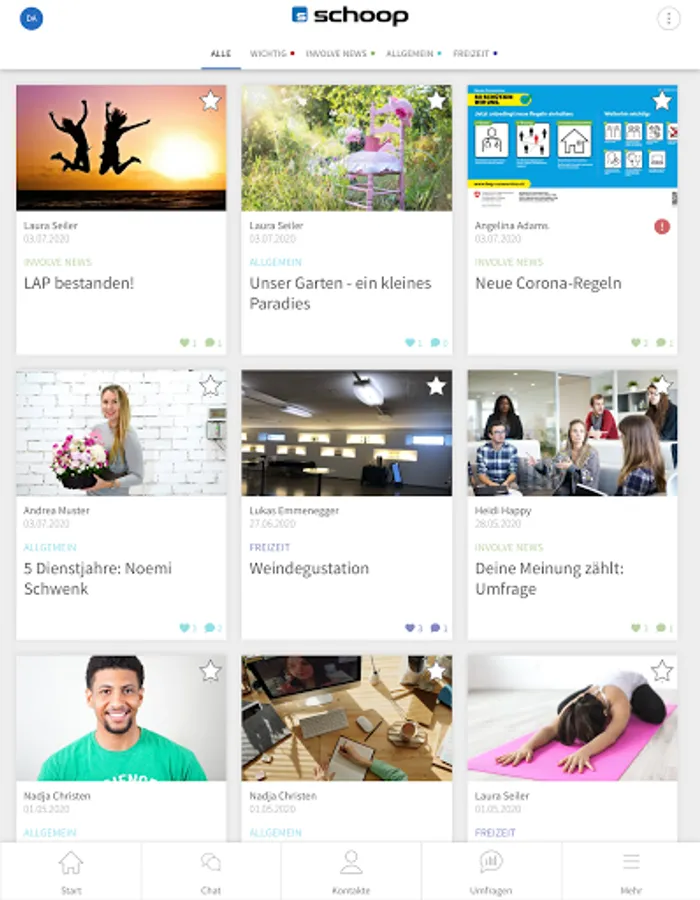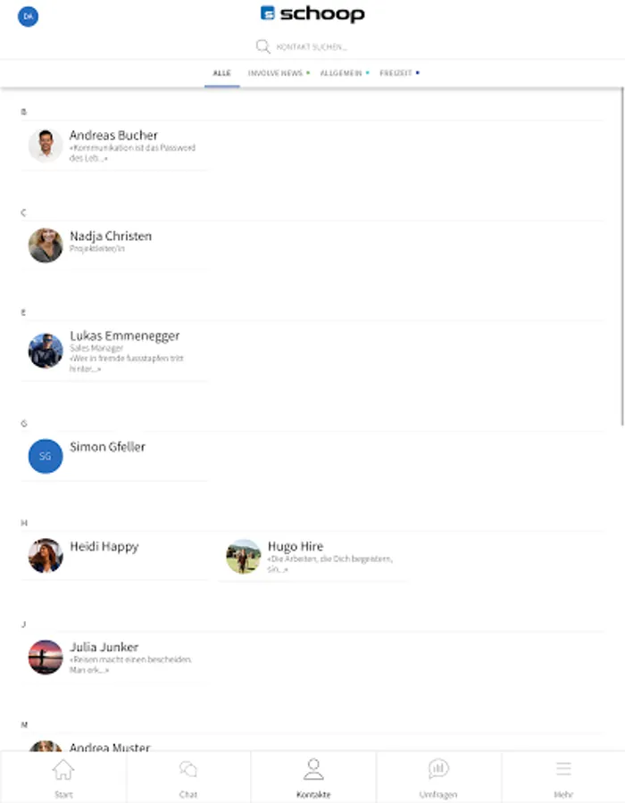 Erfahren Sie ortsunabhängig und jederzeit die neuesten Informationen über Ihr Unternehmen, finden Sie einfach und unkompliziert Ihre Arbeitskollegen im Kontaktverzeichnis und chatten Sie 1:1 oder in Gruppenchats. Alles mit zuverlässiger Schweizer Software auf sicheren Schweizer Servern.