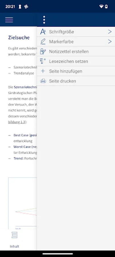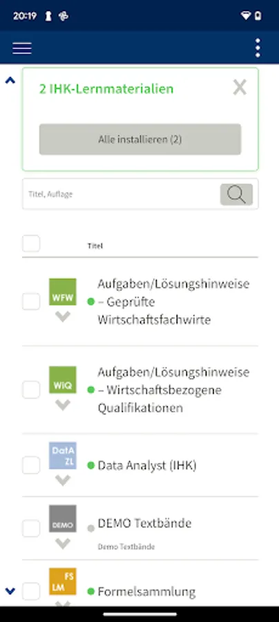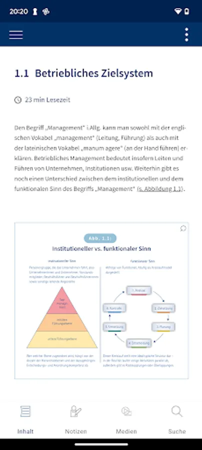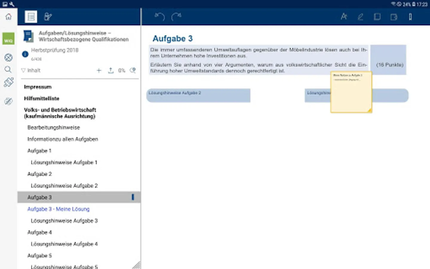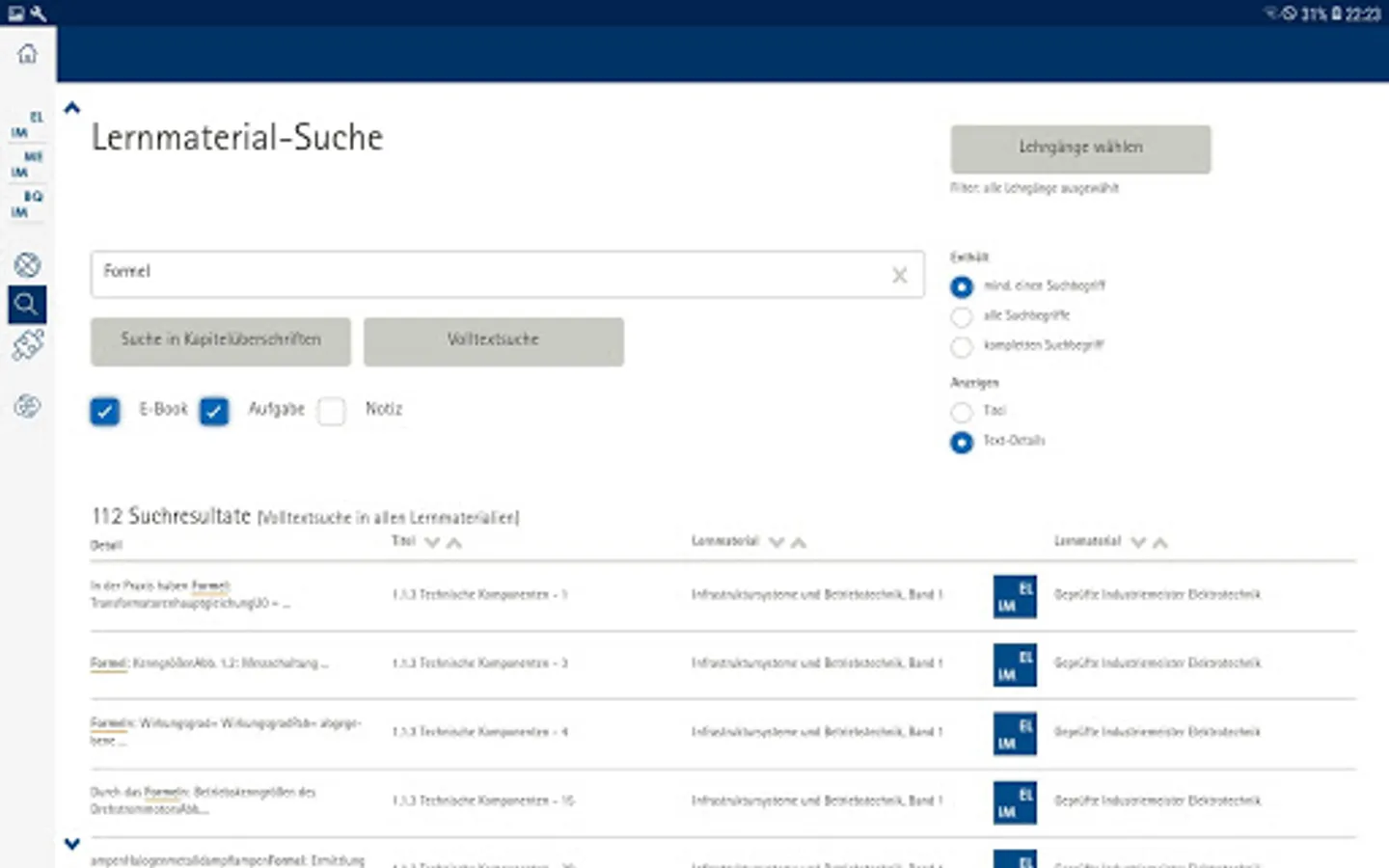 Editing functions such as adding different colored notes and markings, inserting your own pages including your own photos or URLs, an extensive full-text search over one, several or all installed volumes or on the Internet make working with the digital learning materials very convenient. Once you have loaded your materials into the app using the activation code, you will need i. d. Usually no internet connection for further processing. An Internet connection is only required for synchronization with the “IHK Lern mobil” cloud, for loading updates and for using the 3DQR codes available in some text volumes.