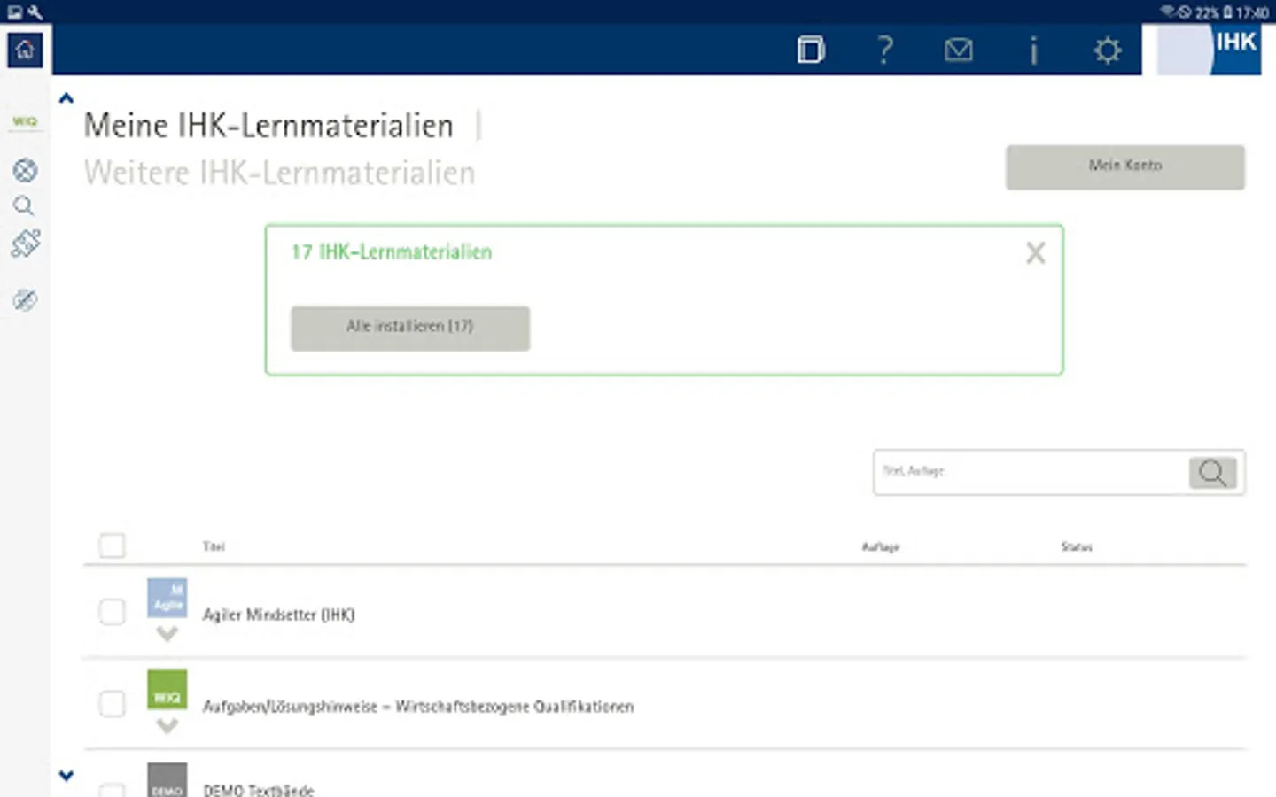 With "IHK Learn Mobile", users have their IHK learning materials to hand on Android tablets and smartphones anytime and anywhere - whether at home, in a course or on the go on the bus or train.