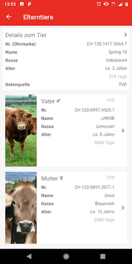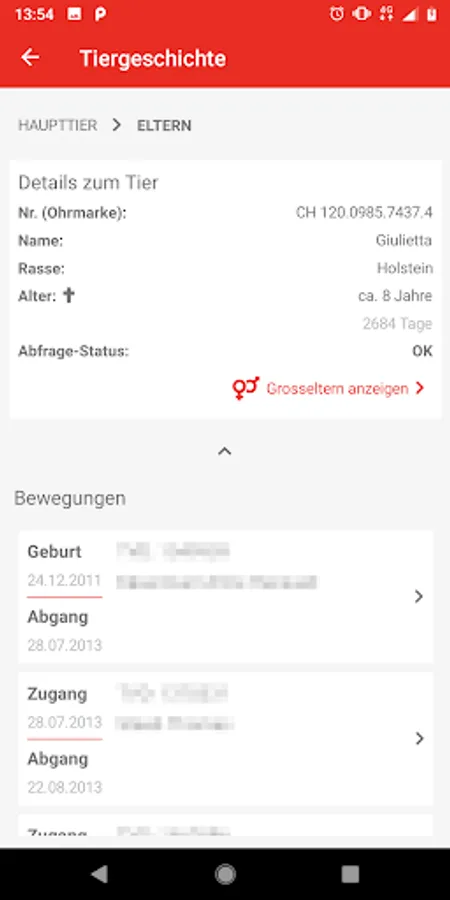 For each animal, you will receive information about its name, race, age and life status. In addition, you can see the individual inflows and outflows of an animal exactly.