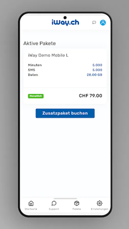 Find your consumption directly on the start screen. From there, call up details on existing contracts, terms and connection charges. Book additional data packages directly in the app or upgrade your tariff.