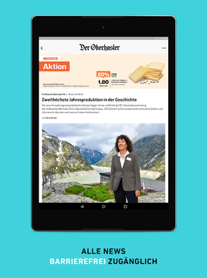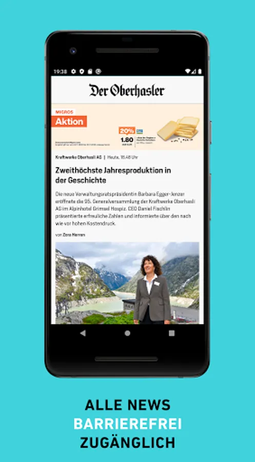 The app of the newspaper “Der Oberhasler” offers news, background information, opinions, cultural tips and weather around Meiringen, the Oberhasli and the entire Bernese Oberland.