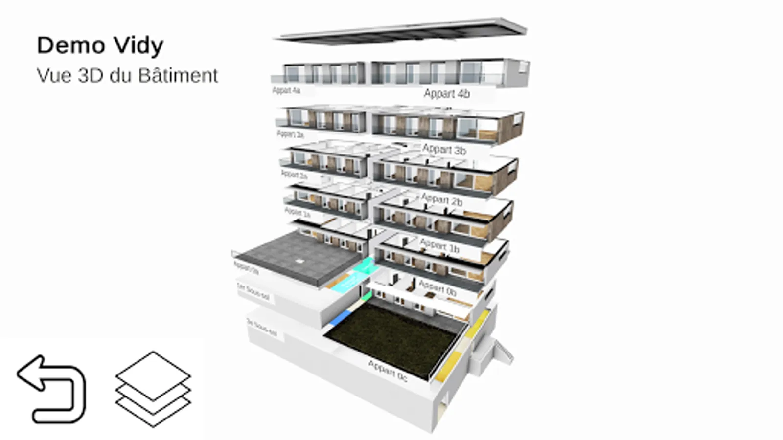 New tool for visualizing the external views of a building. Exploded view of floors and apartments. Good application to understand and analyze the layout.
