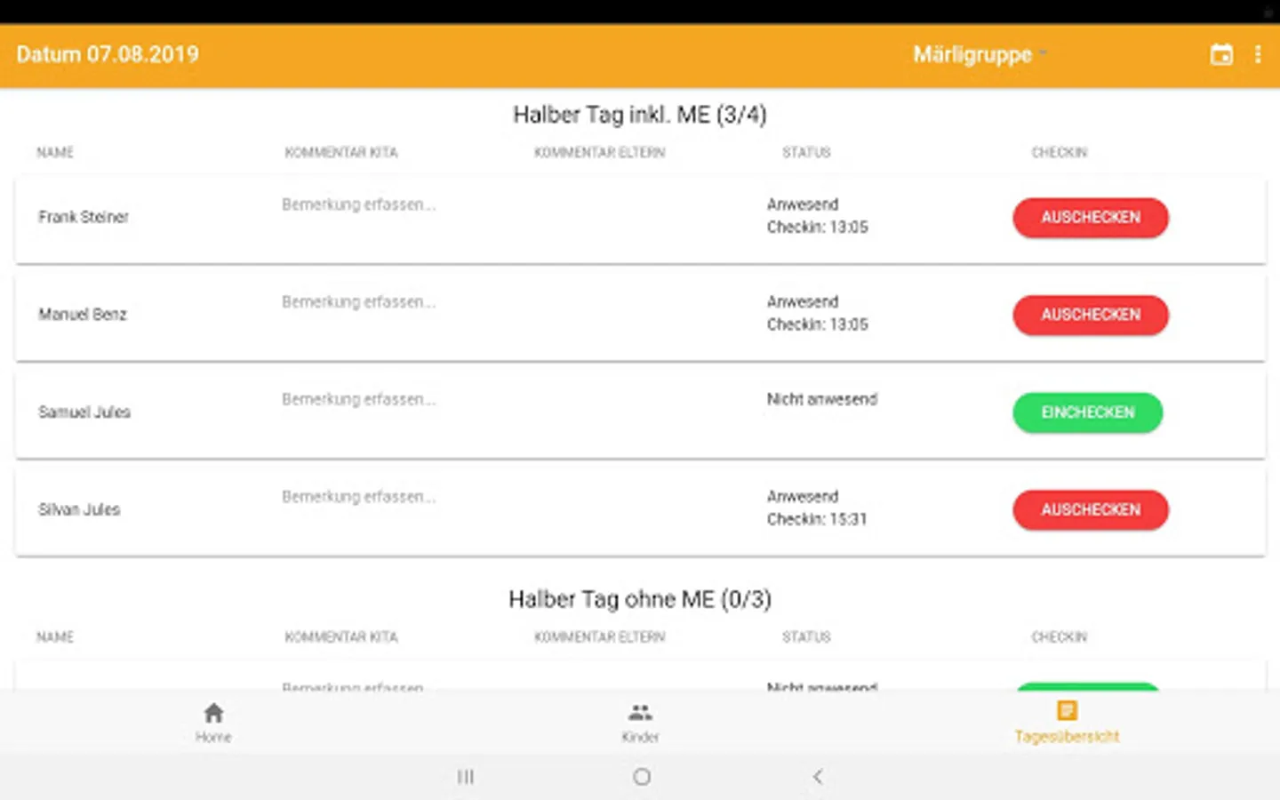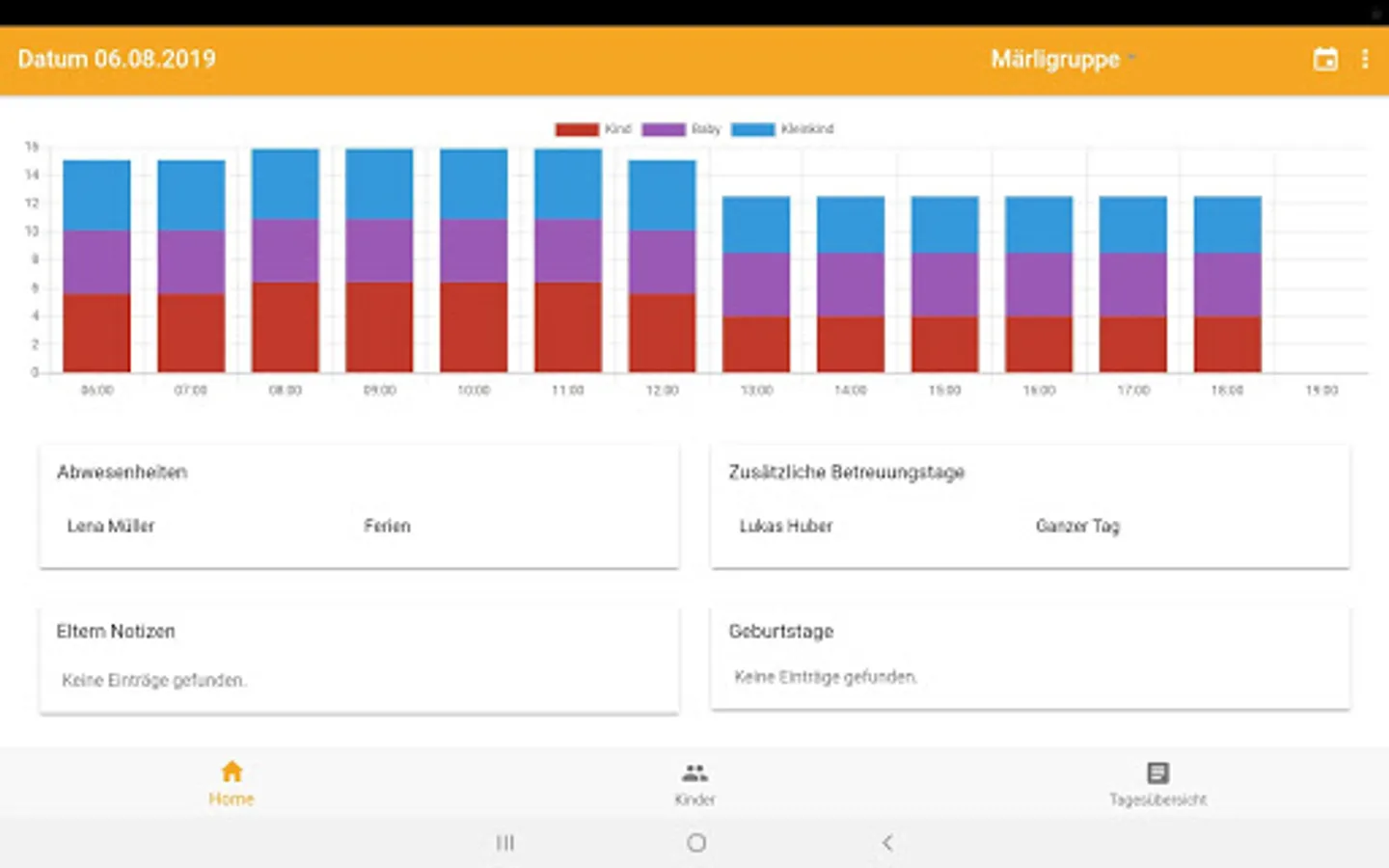 See at a glance the utilization of your Kita, absences, additional days and birthdays.