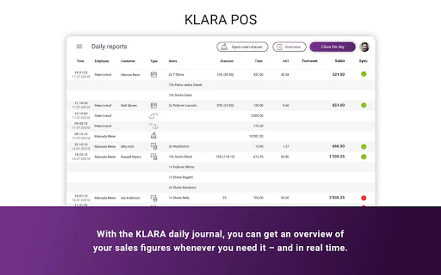 A key point of checkout is reconciliation with KLARA Accounting. This works completely automatically and you do not have to lift a finger. You take care of your customers and KLARA POS ensures that your accounting is up-to-date and correct.