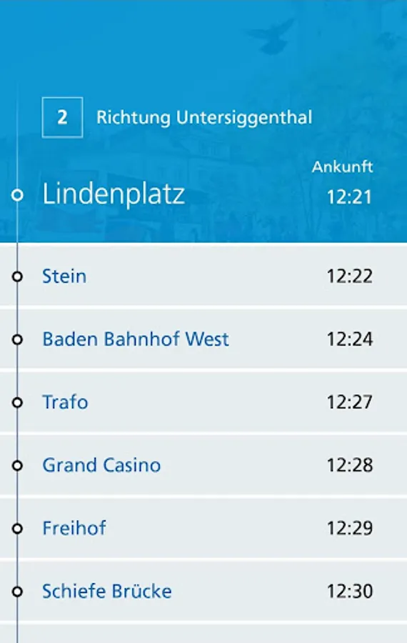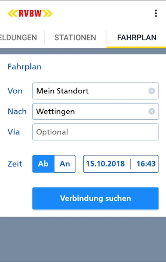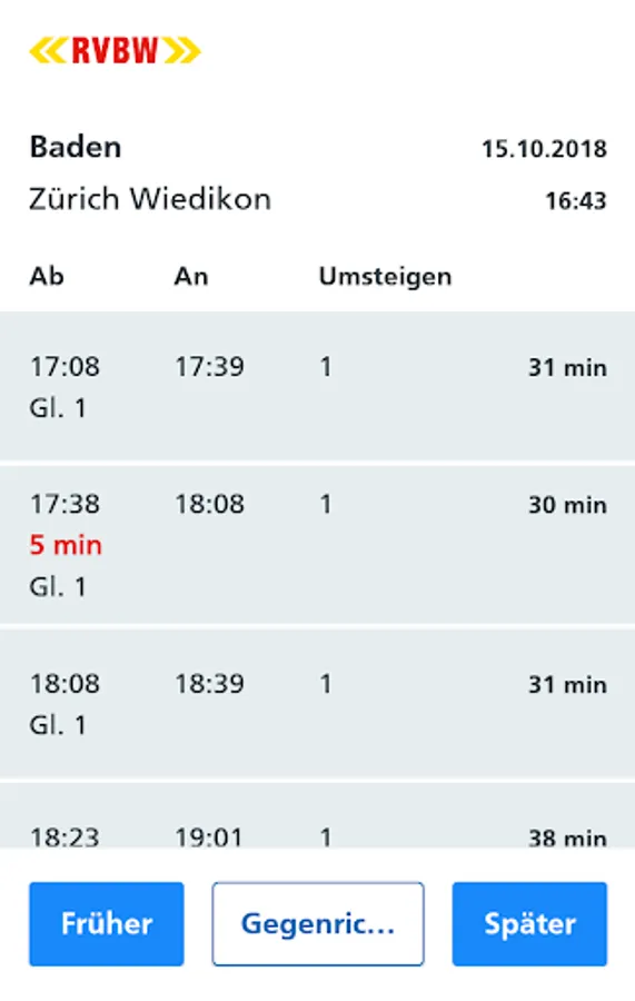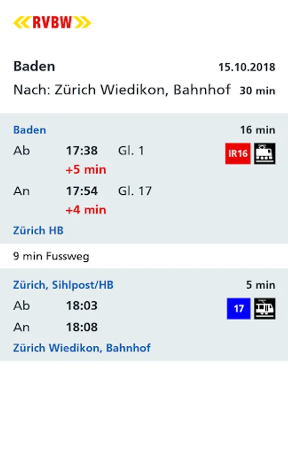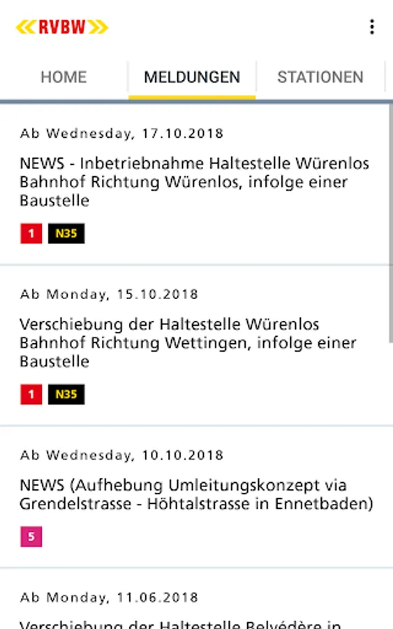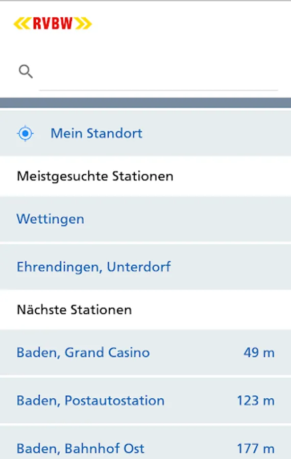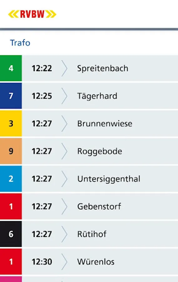 With the app of the Regional Public Transportation Baden-Wettingen you see at a glance all departures in real time from a stop in the route network of RVBW. While driving with a bus of RVBW you automatically see the current exchange rate, including the arrival times at the respective stops. In addition to the information on the trips offers the app also provides access to the current operating messages. You can also set per line if you want to get a message as Push Notification.