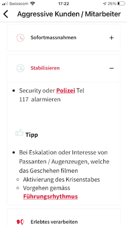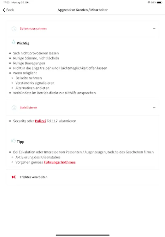 - Educationally prepared checklists for incident management during and after a crisis in order to avoid the incidents experienced (e.g. amok threat, large fire, flood, emergency deployment of civil protection, death of a key person, targeted violence, etc.) .) and to alleviate the consequences of the crisis