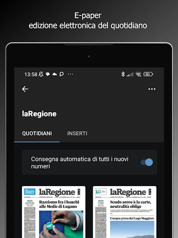Local, national and international news, reliable and always up-to-date, packaged by the editorial staff of laRegione. At your fingertips, accessible in a simple and fast way, all the information coming from Italian-speaking Switzerland in a single application.