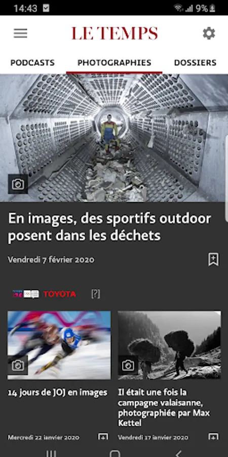 • Find the diversity of multimedia content Le Temps: videos, photos, podcasts ...