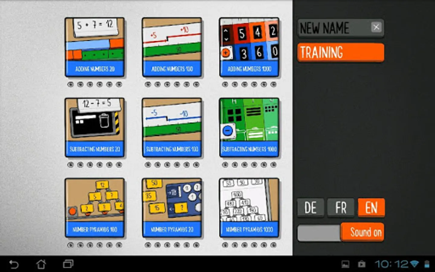 This app from the appolino series is about adding and subtracting numbers. The range of numbers up to 20, to 100 and to 1000, working with blocks, number lines and value charts are taught and practiced. The number pyramids combine adding and subtracting. Appolino Plus& Minus is based on the curriculum of the first years of school.