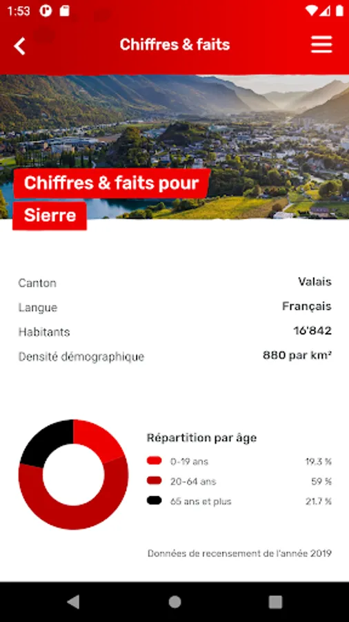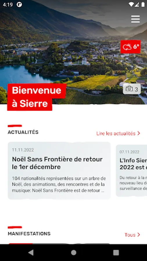With the Sierre application, you have access in a few clicks to all the information on the City of Sierre. Close to you, this application allows you to find out about various aspects of municipal administration, such as news, timetables, an interactive map, information on parking, the calendar, contacts, but also about clubs and associations. from the community.