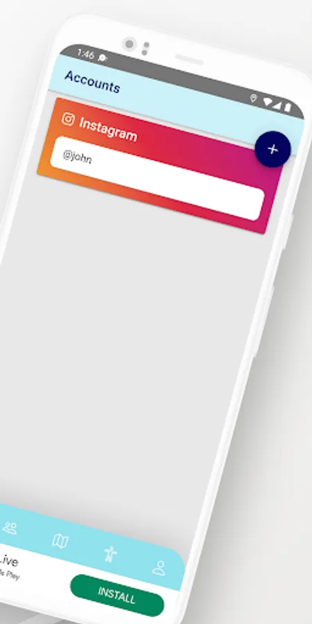 Each user creates a personal profile with information about themselves and their social accounts. Frienradar uses this information to display people nearby.