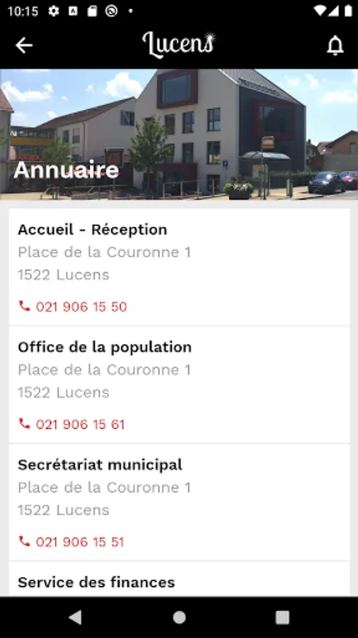 The application of the Municipality of Lucens gives you access at all times to the following content: