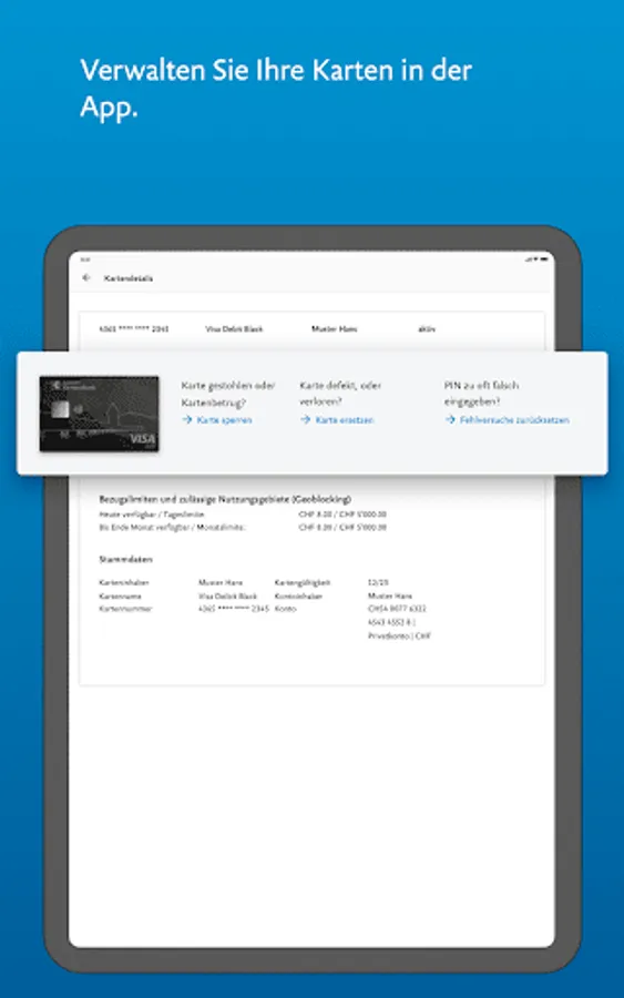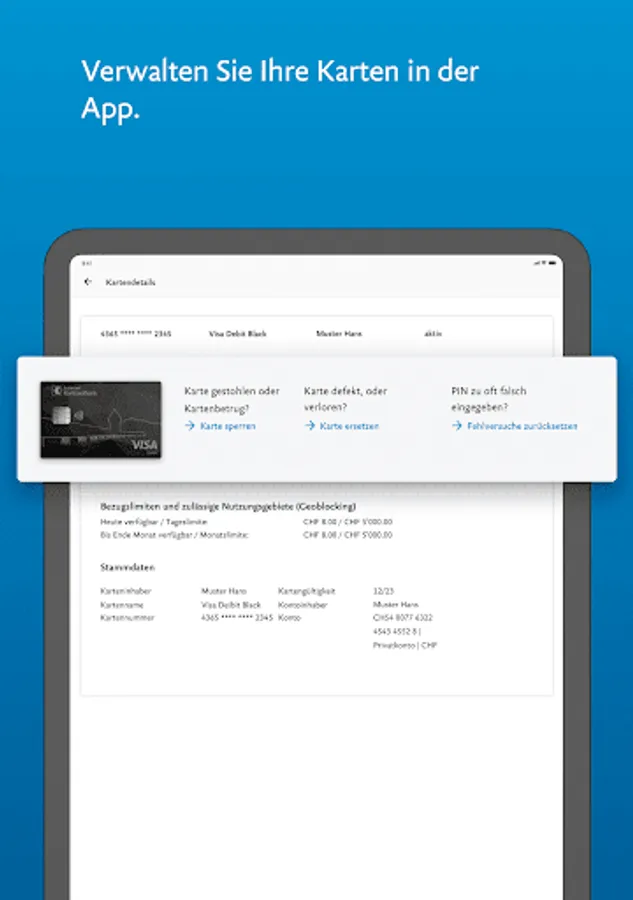 Block lost cards directly in the app and order a replacement card at the same time. Adjust card limits or enable/disable contactless payments.