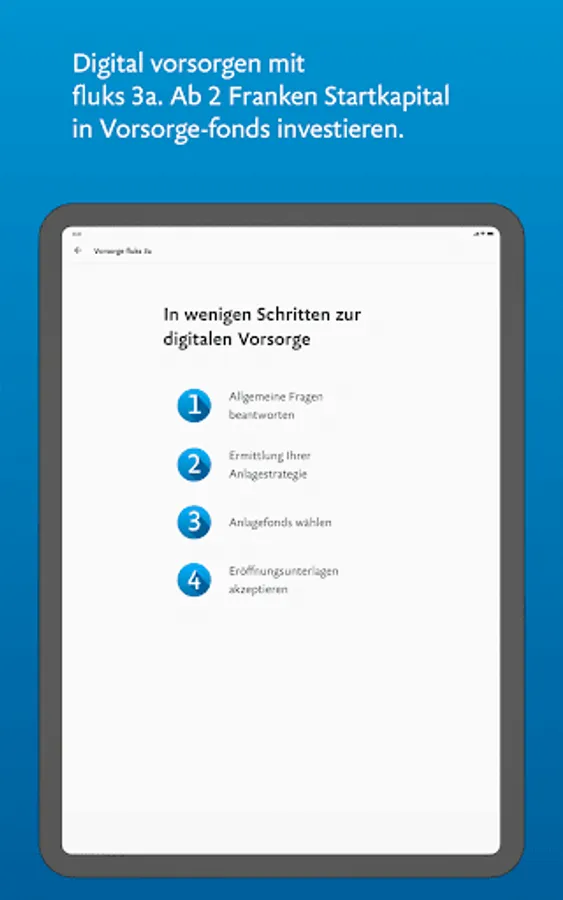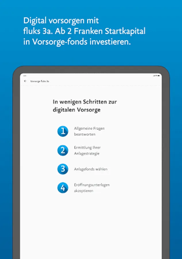 From as little as 2 francs of starting capital, you can invest completely digitally in the pension fund that is right for you.