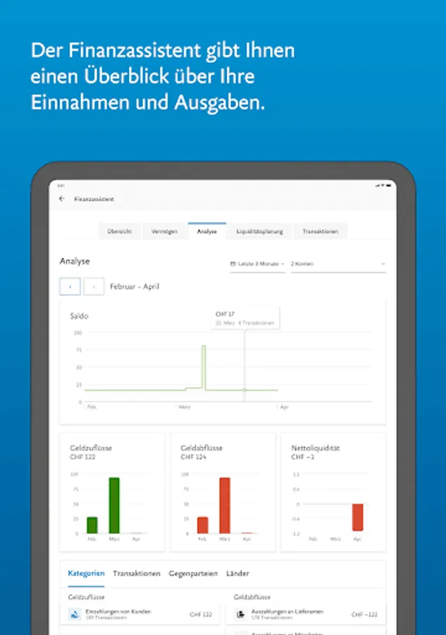 The transactions of your Visa debit and credit cards are visible in the app at any time.