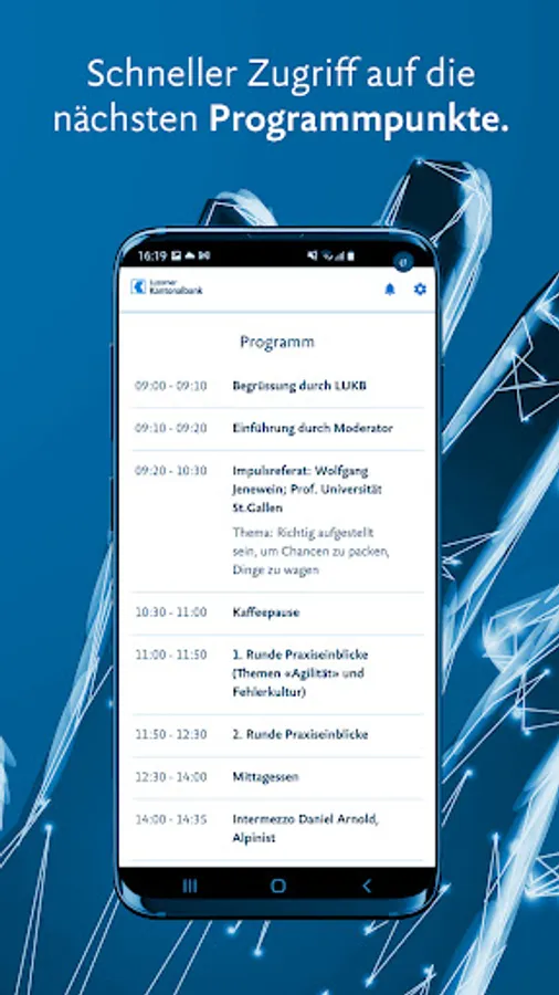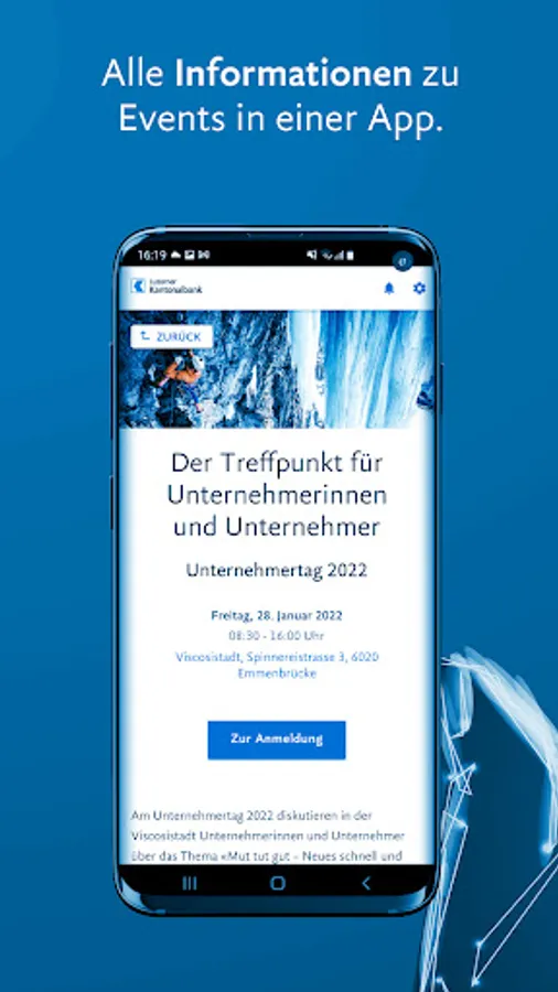 With the “LUKB Events” app, you have all the information you need on the various events of the Luzerner Kantonalbank at hand at all times.