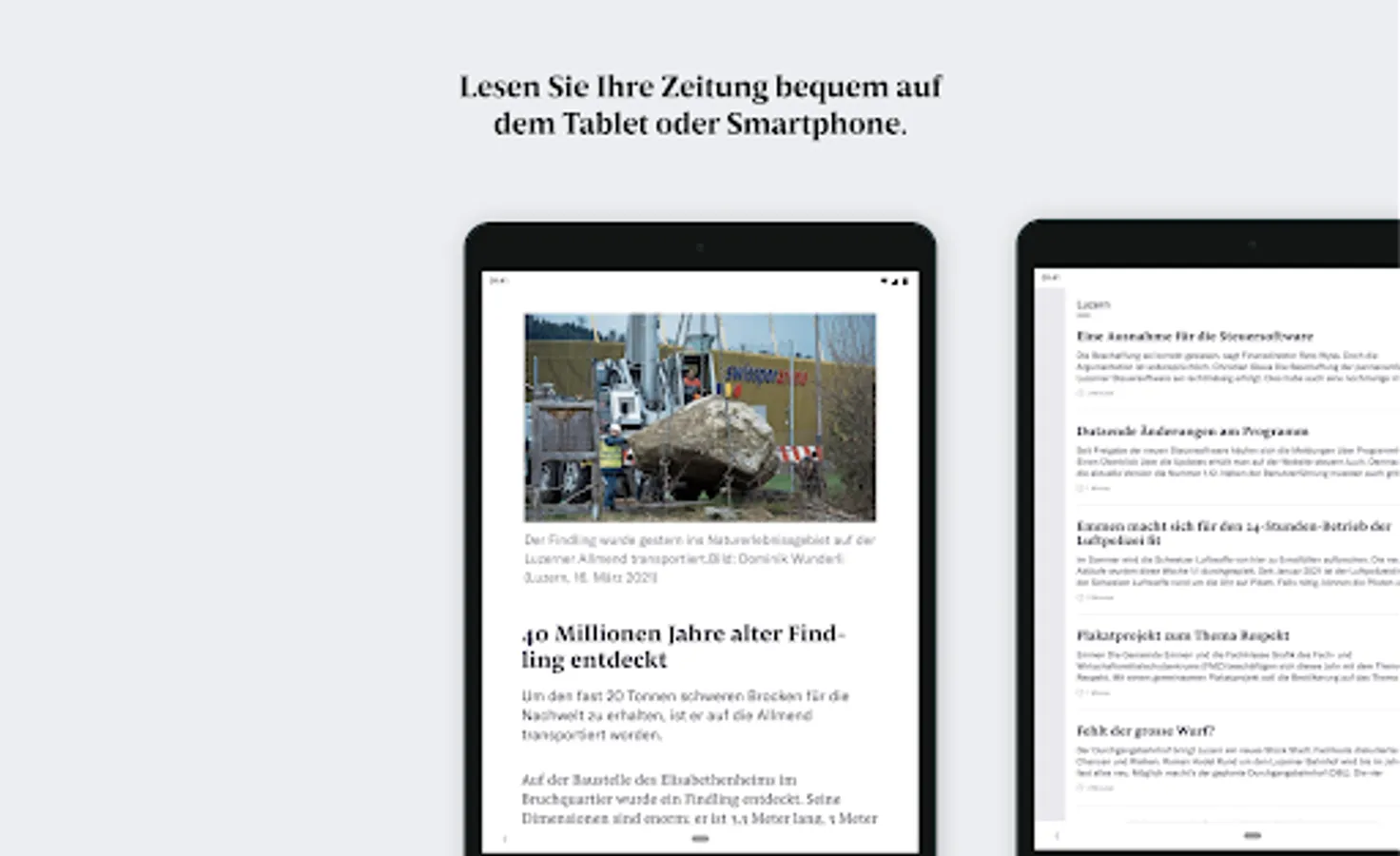 The e-paper app for the "Luzerner Zeitung" and its regional editions, "Central Switzerland on Sunday" and all supplements and magazines.