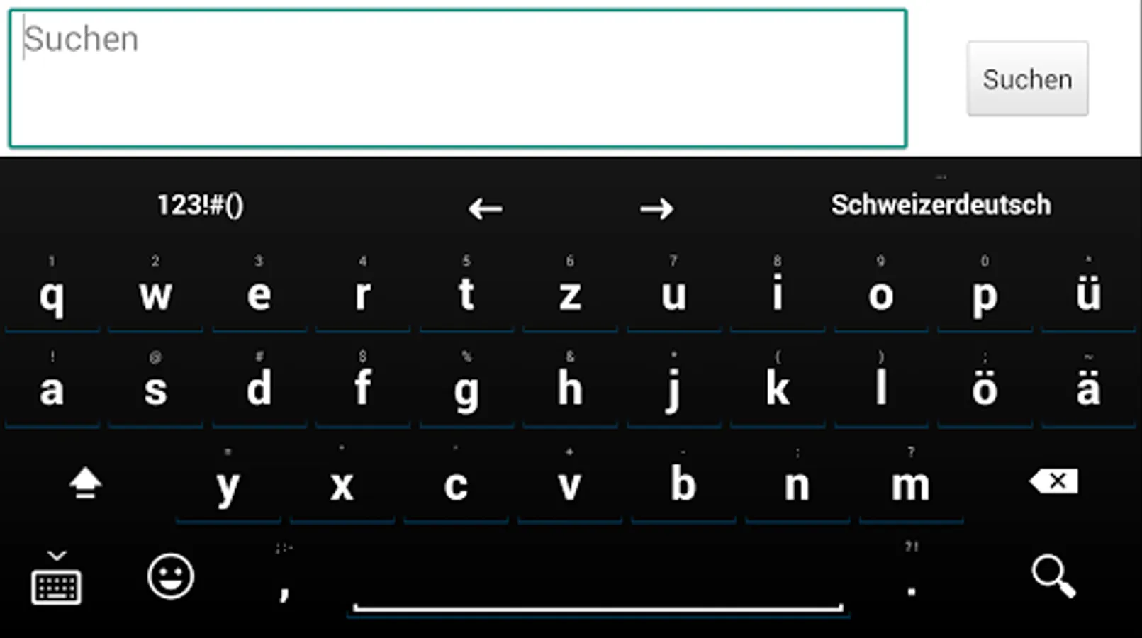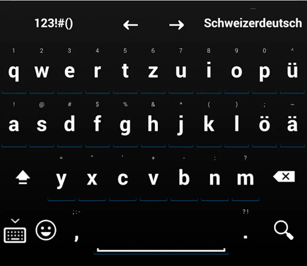 Swiss German keyboard and keyboard layout for hardware keyboards.