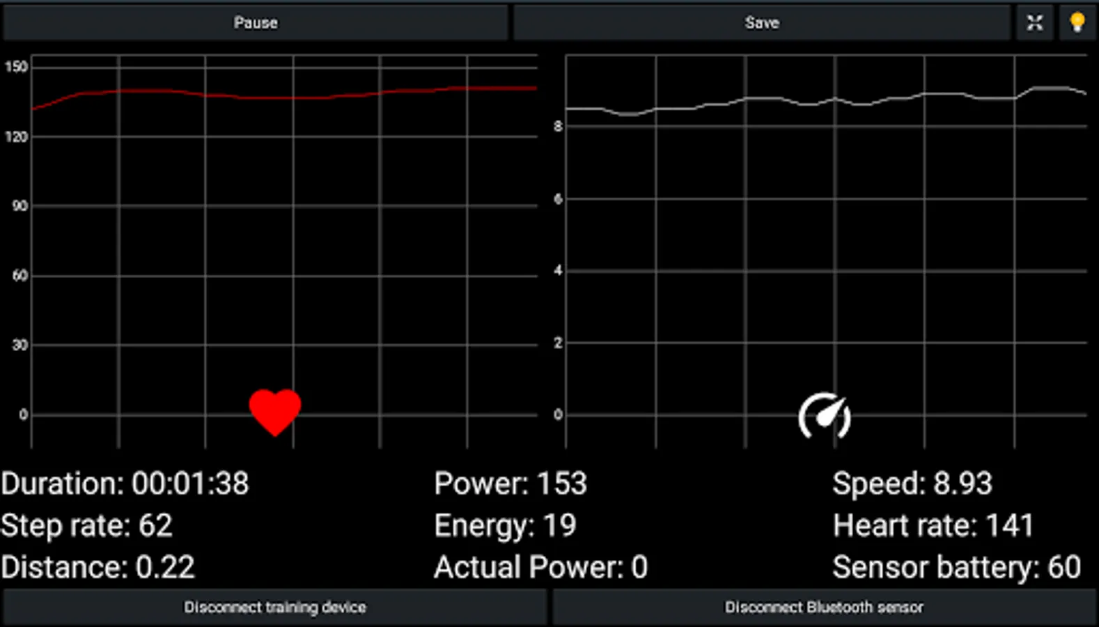 This application can connect to various Kettler and Fitlinxx (CSAFE) training devices over an USB to Serial adapter and record the heart rate, speed and power.