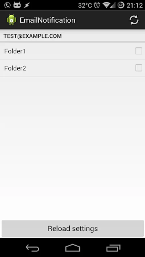The app accesses the email app database and retrieves the names of the mailboxes, their folders and their serverids. (Required for creating the settings file) When selecting a Folder in the app a configuration file is created for this folder that enables the notification feature of the email app. For notifications to appear the subfolders must be configured to synchronize automatically. (This can be done from the email app menu when opening a subfolder)