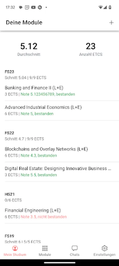 - Grade average: Always keep an eye on your personal grade average, including the correct weighting according to ECTS points.
