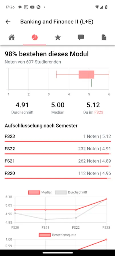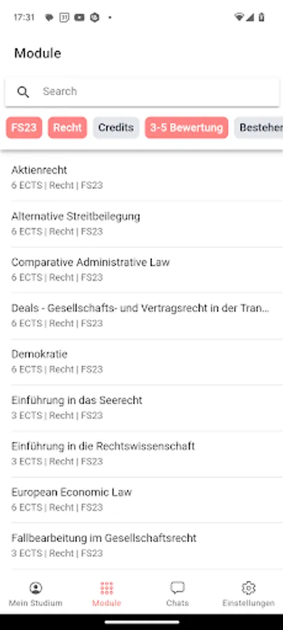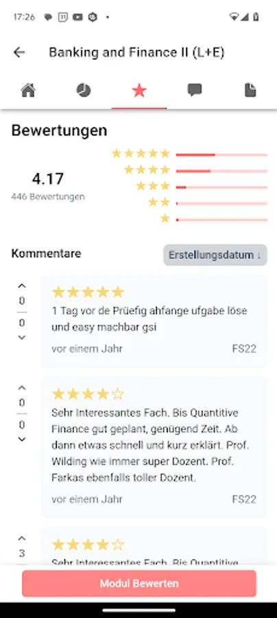 - Module management and rating: You can easily book and rate your modules. Look at the average grades of previous courses to get a better idea of what to expect.