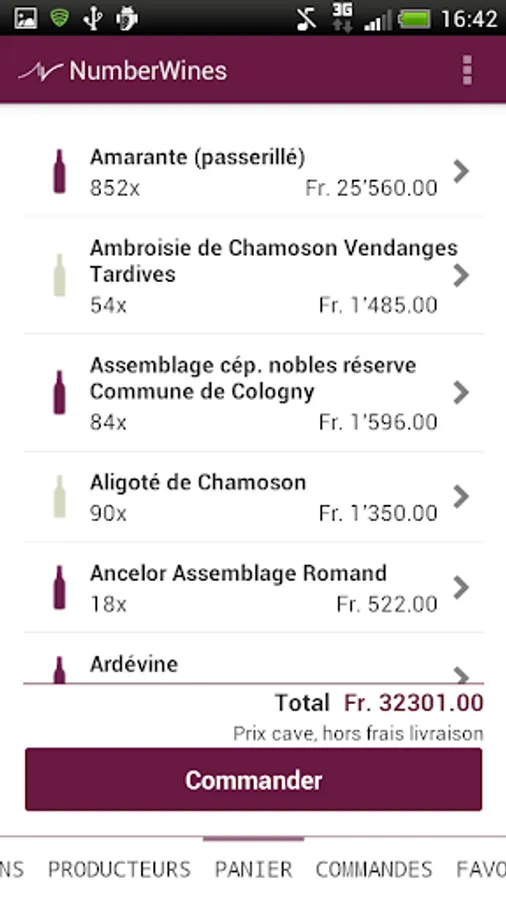 Because NumberWines has elected to highlight the local production for its variety of great quality wines, retrieve your preferred wine-growers in the Producers menu and their listed products in the Wine menu. Make your selection through one of these 2 menus and from the wine card, store your discovery in Favourites or add it to your order Basket. You can complete your choice with other wines and validate, all in 1 click. An order confirmation will reach you promptly. Pay the producer directly and he will take care of the delivery.