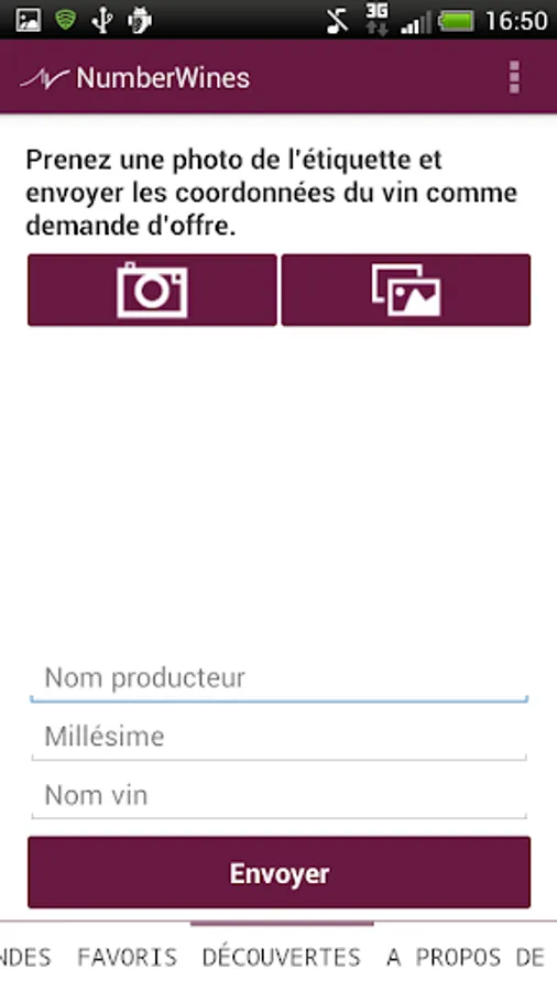 If your choice is not referenced yet, go to the Discoveries menu and take a picture of the wine label. We will get you an offer and you can then place an order.
