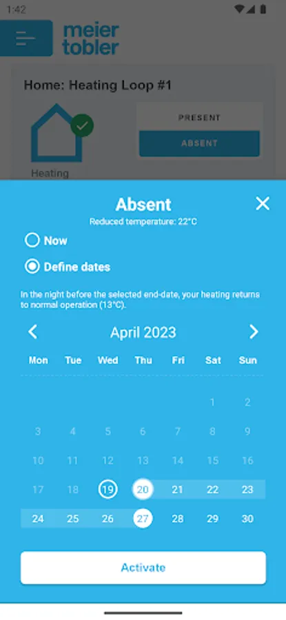 You can use this app to keep an eye on the status and temperature of your heat pump fitted with SmartGuard and easily plan the times you will be at home and away to optimise energy usage.