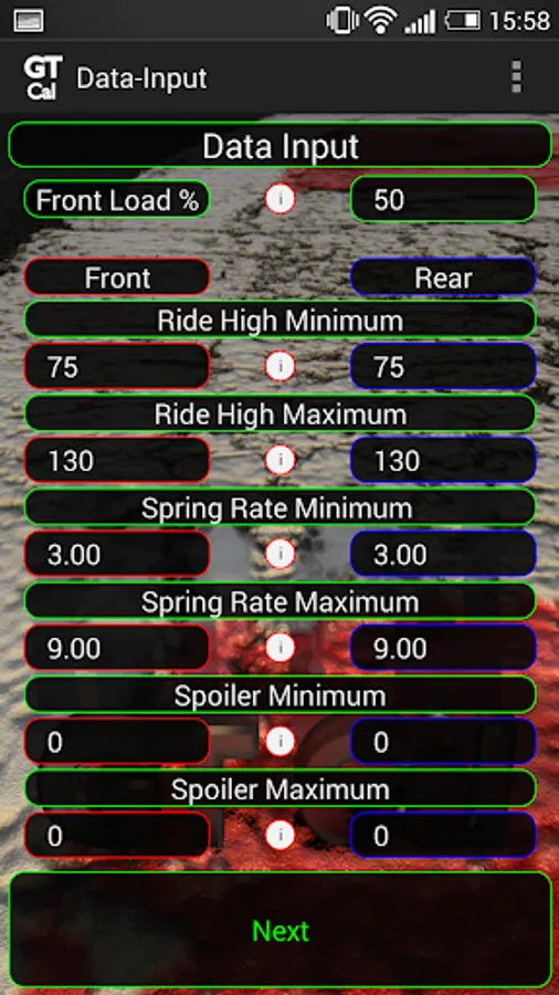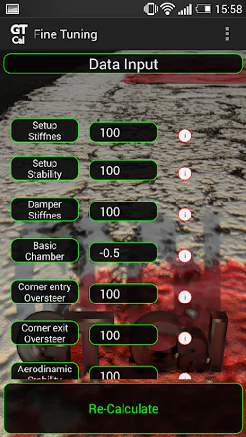 This is a simple app to calculate a setup from given parameters of the car