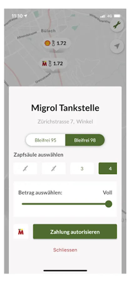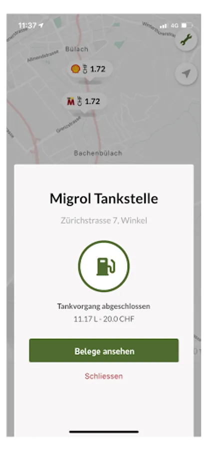 Drive to a free petrol pump at one of the 310 or so Migrol AG petrol stations and activate the petrol pump with the Migrolcard app. After you have filled your tank, billing takes place automatically on the app. You can drive off without queuing in the shop or using the pay machine.