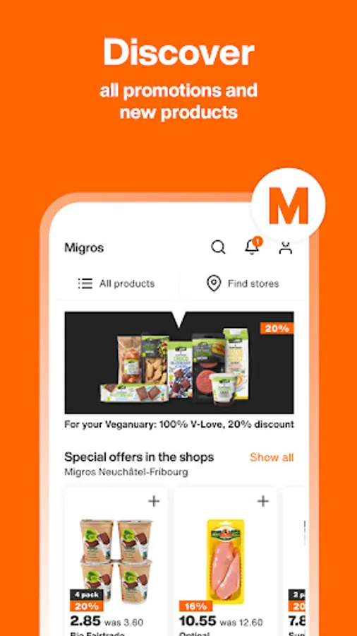 Now you’ll never miss unbeatable special offers or attractive new products. That’s because push notifications always keep you up to date with the latest offers. The Migros app also informs you about which products are currently available at which Migros store.