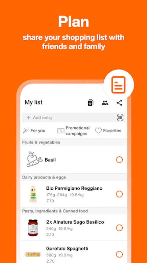 Be inspired by thousands of Migusto recipes for your shopping planning, save your favourite recipes in the app and add ingredients directly to your shopping list.