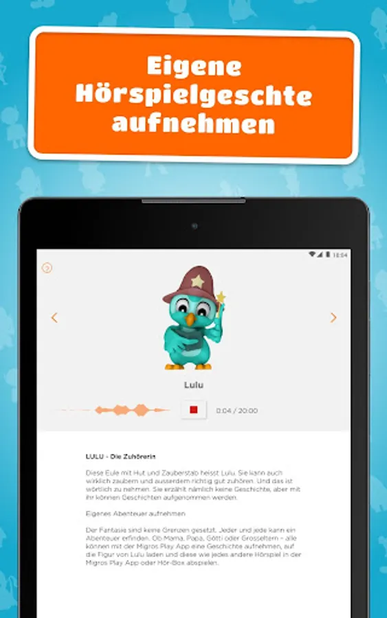 You can also play the popular radio play stories of the Disney Stars, the superheroes or the Migros Imp with the Migros Play app. Simply scan the bottom of the figure with the app and the stories of Balu, Finn or Mick are activated. Already knew? With the special recording character you can record your own story. Discover the new Disney Stars and 10 new, exciting stories now!