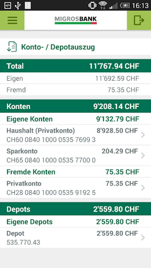 • With the Migros Bank Balance Widget you can see the current account balance and the latest bookings on your display
