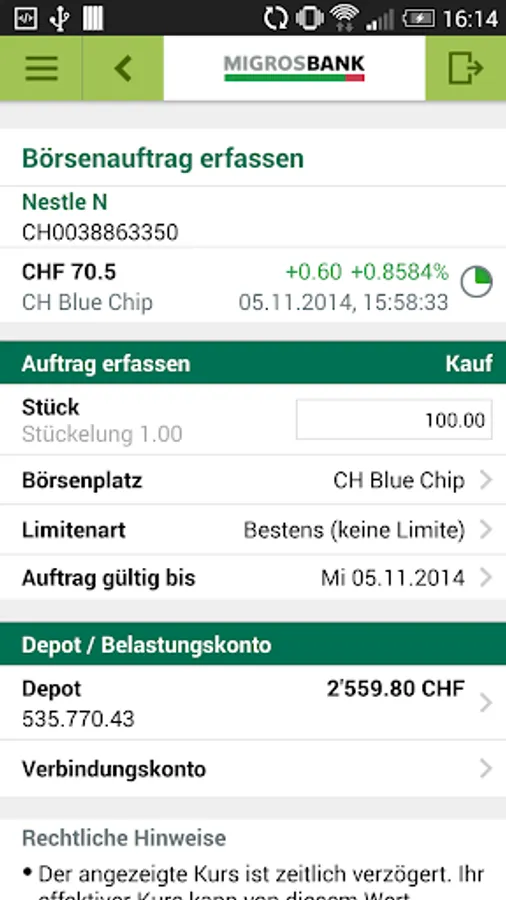 With the Migros Bank App, you have access to your accounts and accounts anytime, anywhere. You can execute payments and stock market orders. At a glance you can see the current market prices, currencies and interest rates. Find our nearest branches and free money options.