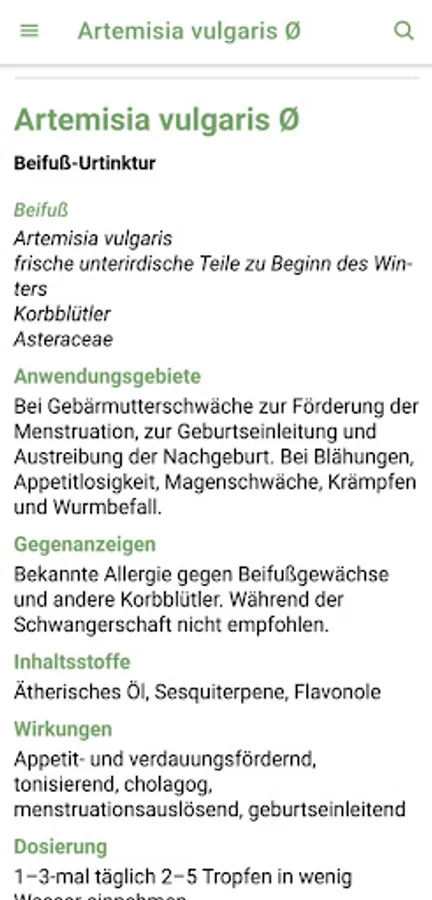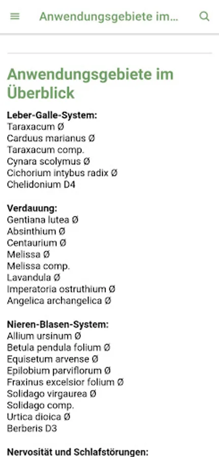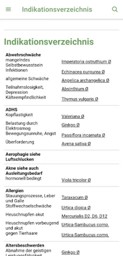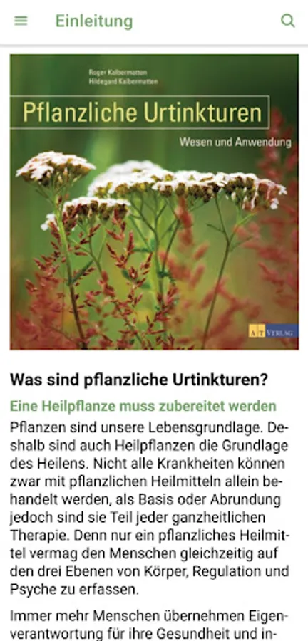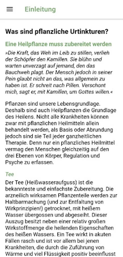 Plant-based mother tinctures presents the nature, areas of application, ingredients, effects and dosage of 48 well-known medicinal plants in a clear way. After an introduction to these subject areas, you can navigate intuitively through this app with your main topics and use the indication-related search function.