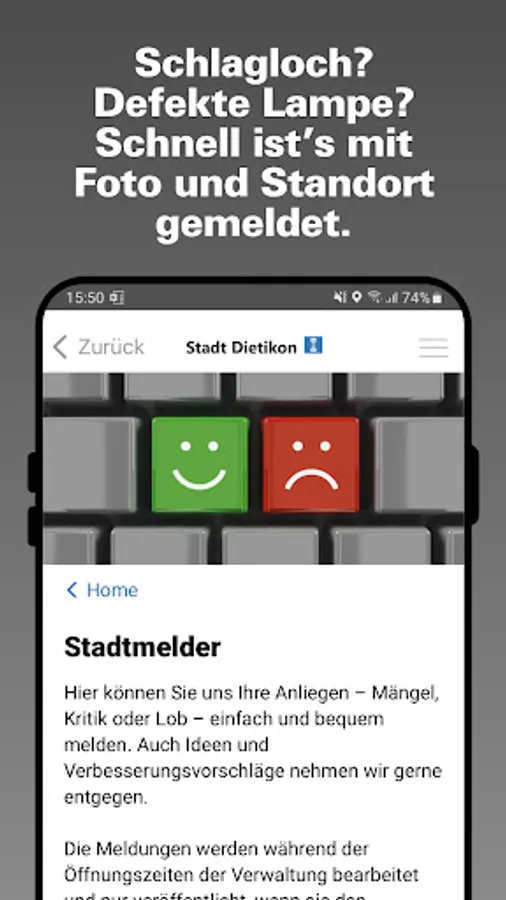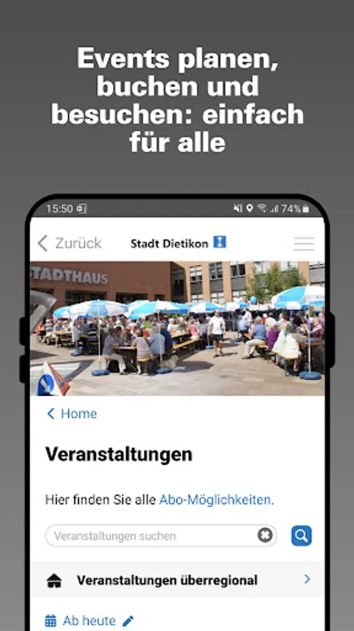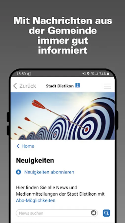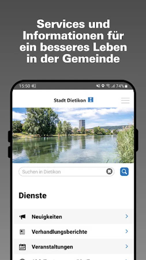 The official app of the city of Dietikon offers up-to-date information about the city and lets residents and guests actively participate in city life.