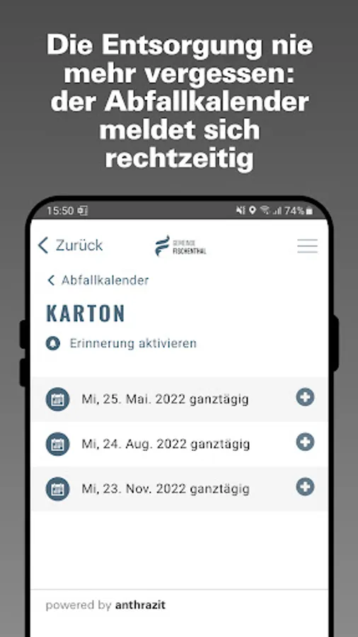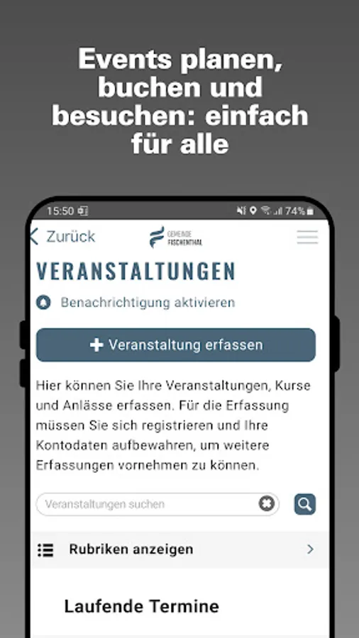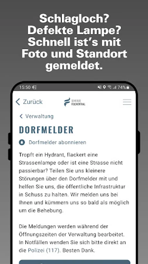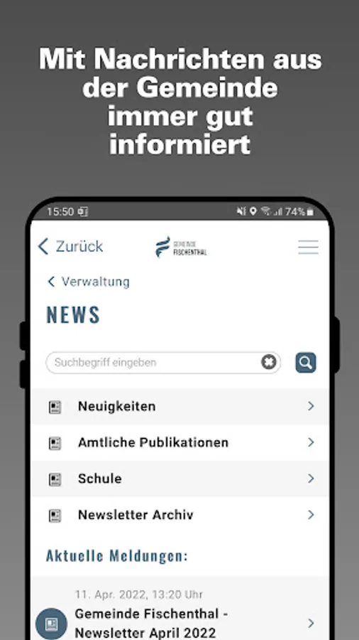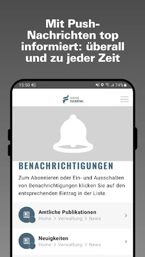 With the app of the community Fischenthal you stay up to date: Information from the administration, events, associations, trade, market place, waste collections and more.