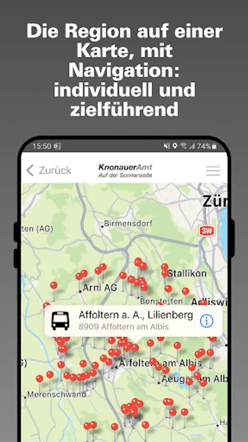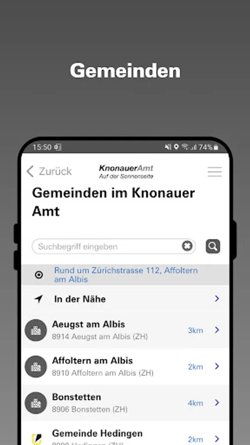 This is the official app of the Knonauer office or the district Affoltern with its 14 municipalities Aeugst am Albis, city of Affoltern am Albis, Bonstetten, Hausen am Albis, Hedingen, Kappel am Albis, Knonau, Maschwanden, Mettmenstetten, Obfelden, Ottenbach, Rifferswil, Stallikon and Wettswil am Albis.