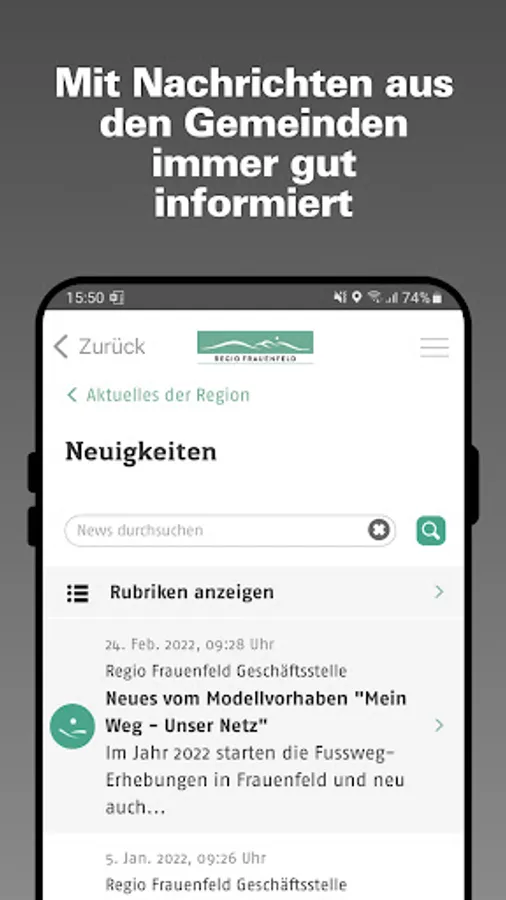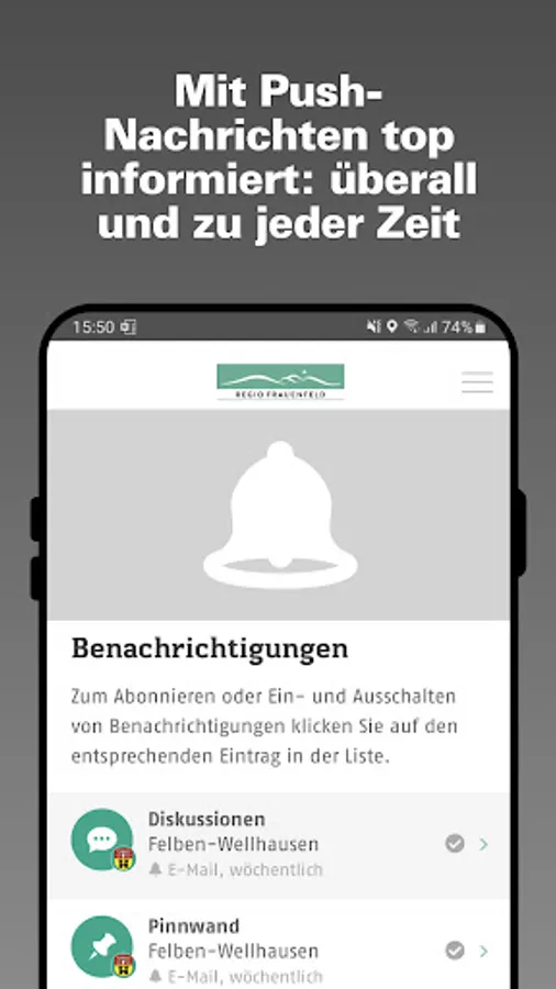 Notifications can be set individually. So you will never miss the exciting topics of the region again.
