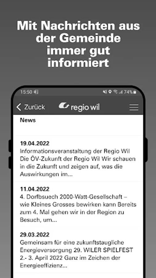 A diverse app for visitors and the people of our region. The regional Wil, the jewel of the Eastern, economic, environmental and cultural inter-cantonal is an attractive region with good transport connections. You will find in our RegioWil App