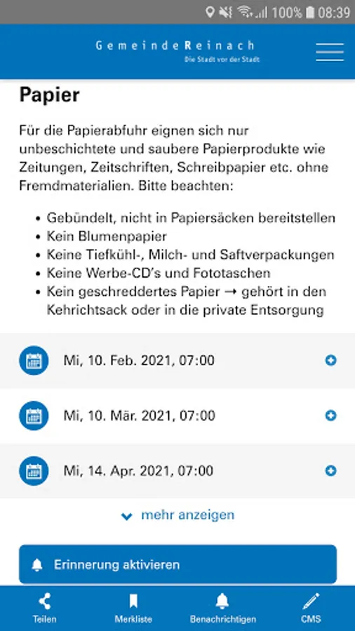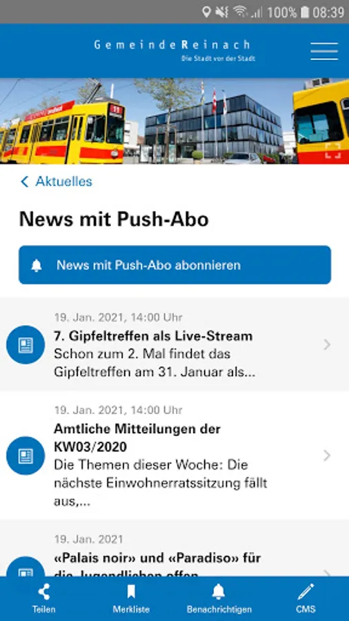 Information from Reinach, news from local politics, leisure activities in the community and much more: With the app, the municipality Reinach you stay mobile. News, Events and Info waste will keep you up to date. And who is the way, always know also what is where to find because all the facilities in Reinach are mapped to the app. It can convert all pages via social media are widespread.