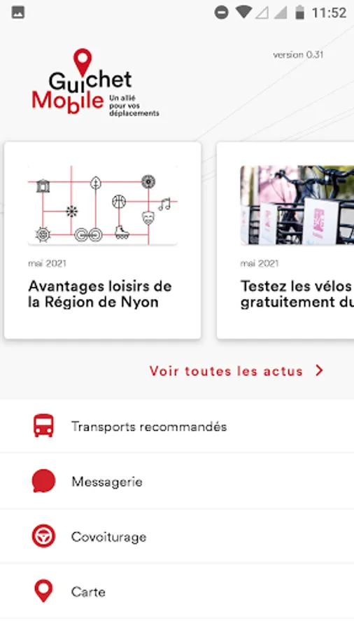 The Guichet Mobile application of Région de Nyon helps you find alternatives to the single occupancy vehicles for your regular or occasional trips and to create carpooling teams.