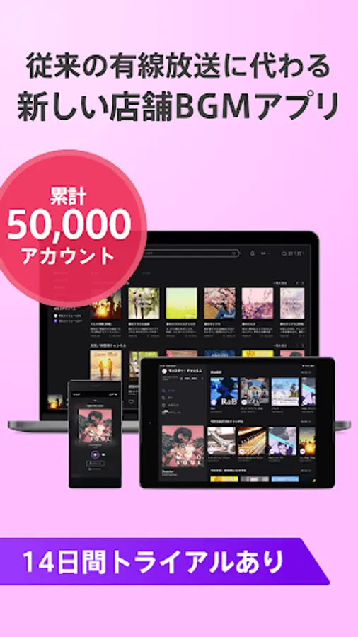 ・ Unlimited use of BGM-dedicated channels selected from 5 million songs around the world