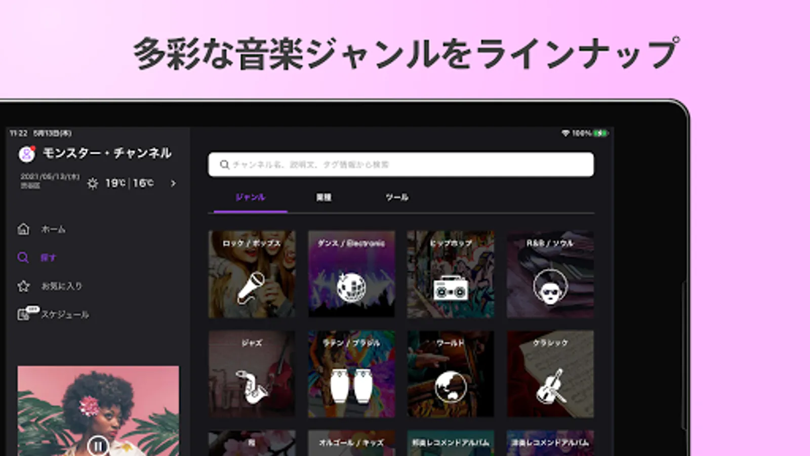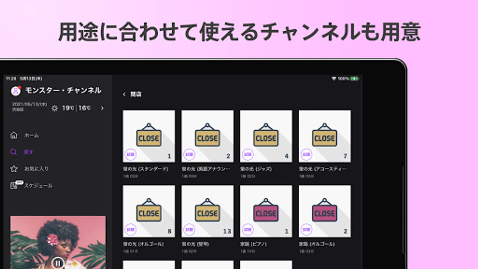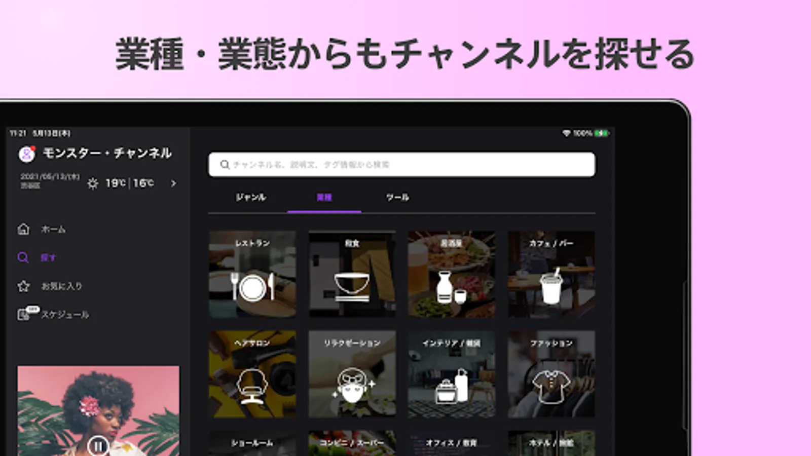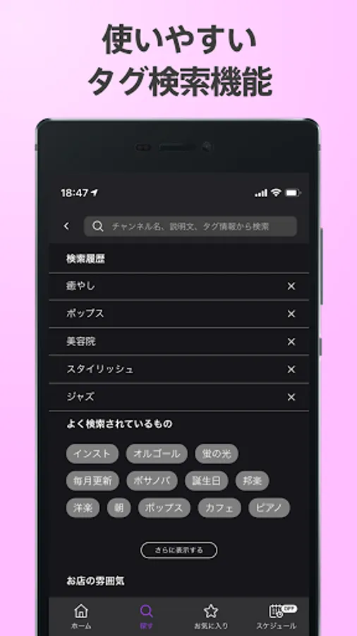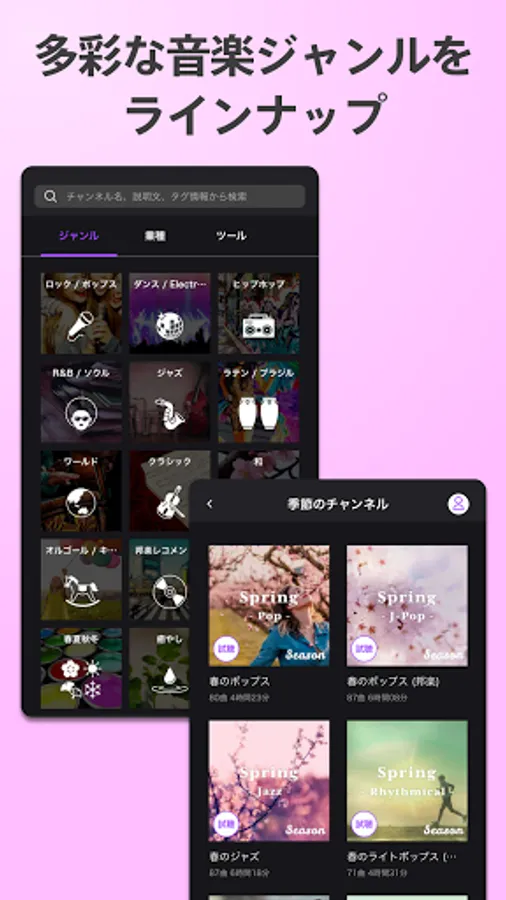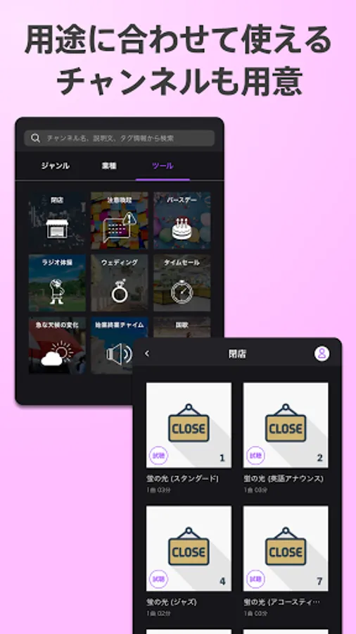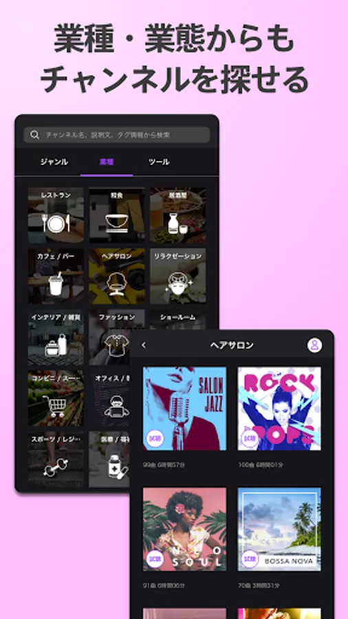 ・ You can search for channels by music genre, store industry, and mood.